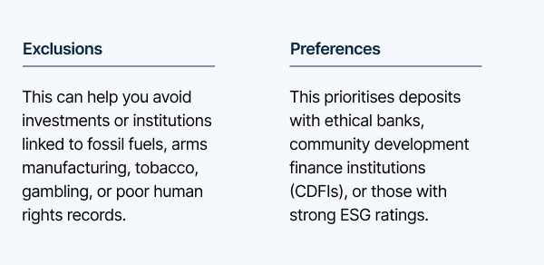 If you want to align your treasury decisions with your organisation’s values and mission, having ESG investment criteria can help ensure that your school’s surplus funds don’t support activities that conflict with its educational or social purpose.